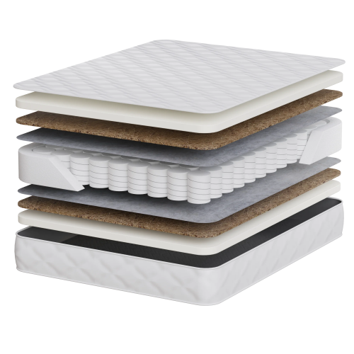 Блок независимых пружин 500 + Войлок 500г/м.кв + Натуральное латексированное кокосовое волокно 10мм + Пенополиуретан 15мм + чехол хлопок